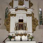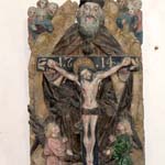 Bemerkenswert ist eine Holzschnitzerei aus Eiche mit der Jahreszahl 1714 (die Zahl wird wohl bei einer Renovierung falsch gelesen worden sein). Es handelt sich um eine Darstellung der Trinität, die von musizierenden Engeln umgeben ist. Die Darstellungsform soll ein bestimmtes Verständnis von der göttlichen Dreieinigkeit ermöglichen: Gott präsentiert Christus den Menschen als denjenigen, der für ihre Sünden am Kreuz gestorben ist. Der Heilige Geist – als Taube dargestellt – steht zwischen Gott und Christus und vermittelt zwischen beiden. Es ist nur möglich, direkt vor den Thron Gottes zu gelangen, wenn man den Zugang über Christus wählt. Diese Art, die göttliche Dreieinigkeit darzustellen, wird als Gnadenstuhl bezeichnet und findet sich vor allem in der christlichen Kunst des Mittelalters und des Barock.